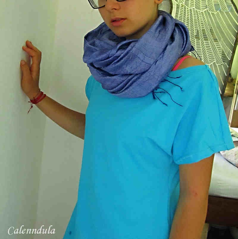 * z tyrkysového jsem šila Malině šaty k legínům. nosí je! na focení si k tomu vzala kabátek ode mne, jinak na něj dojde až na podzim a v zimě. ale dělá mi radost, děvče, když nosí věci ode mne ušité...samozřejmě musím to s ní všechno konzultovat, do detailu!