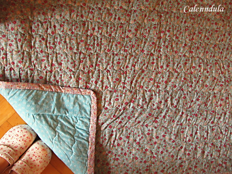 * deku si vymyslela už dávno. vybrala si látky a já že někdy, možná někdy tu deku udělám... deku jedinou jsem utajila a dalo mi to velkou práci, schovávat ji pod stolem přikrytou. o prázdninách jsem ji dělala zrovna, když byla doma. chodila pozdě spát. a já, dělala deku a chodila spát ještě později. uf. ale nepřišla na ni, bylo to překvapení a teď pod ní spí :)